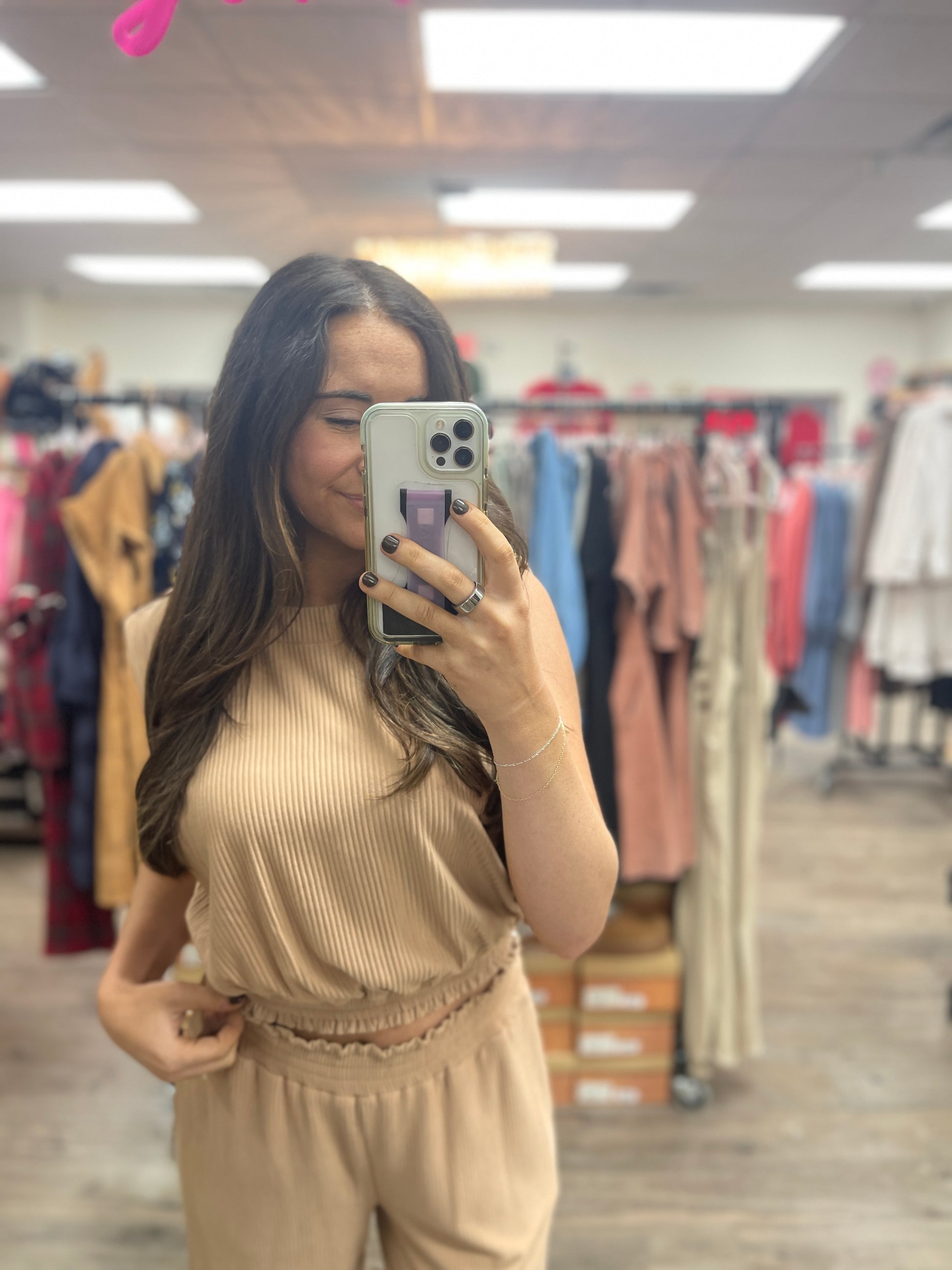 Introducing the Skylar Ribbed Knit Set, expertly designed to elevate your loungewear game. Made with a ribbed fabric for a cozy and comfortable fit, this set features a unique scrunch detailing on the top for added style. In a beautiful almond color, this set will be your go-to for both relaxation and fashion.