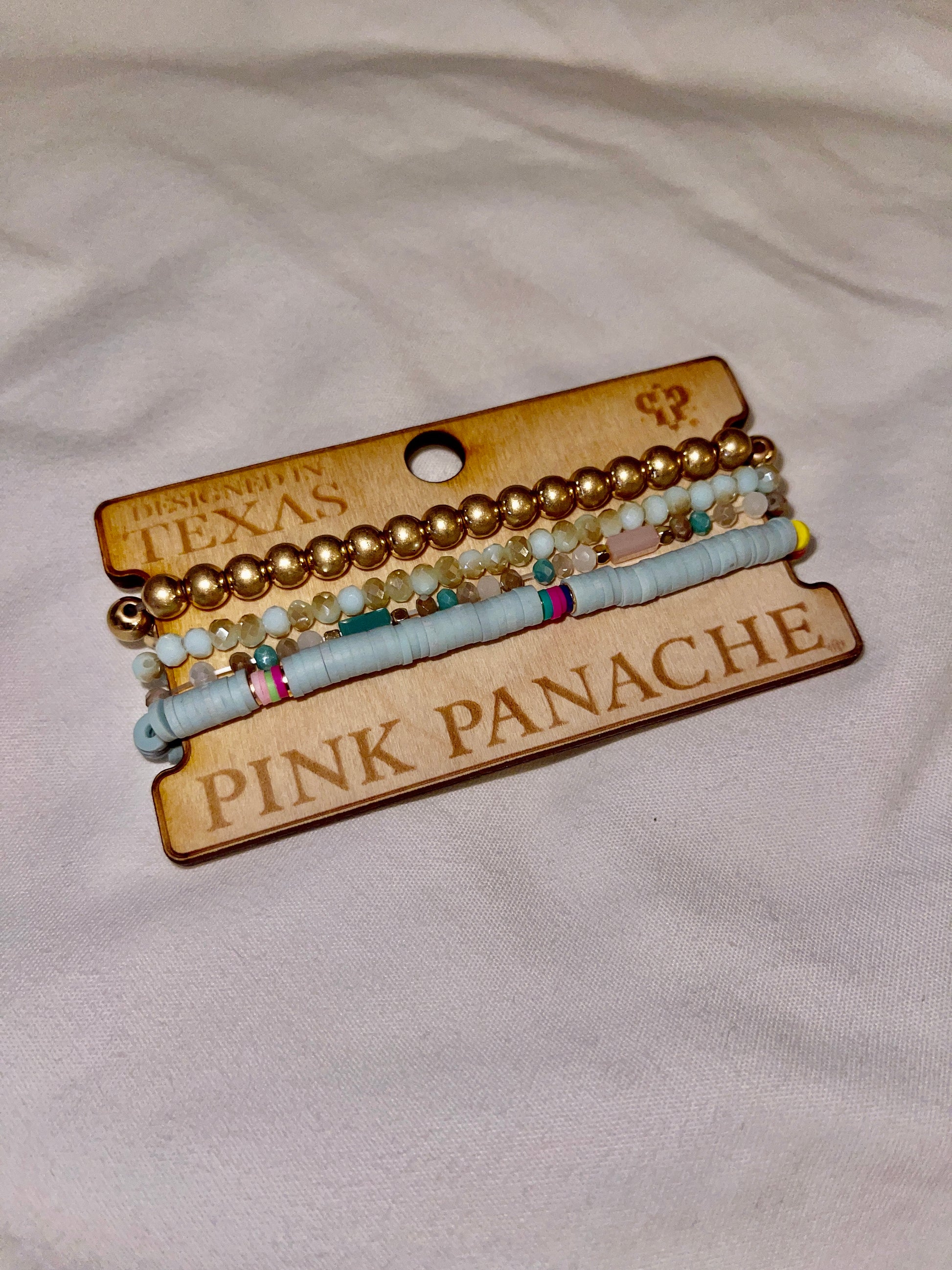 Crafted from delicate stones and gold accents, these subtle stackable bracelets bring a touch of elegance to any outfit. Perfect for everyday wear, the unique design allows each bracelet to be layered for a sophisticated look.